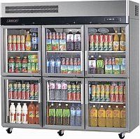 - Со стеклянной дверью. Их используют в торговых залах. Оснащены подсветкой, магнитными замками с дистанционным управлением.