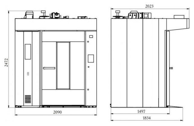 Верхний привод вращения стеллажной тележки, низкий порог пекарной камеры, короткий пандус, верхний узел фиксации тележки позволяют избежать встряски тестовых заготовок при закатывании стеллажной тележки, исключают ее смещение во время выпечки